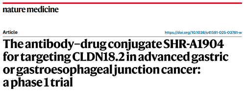 九游会医药CLDN18.2 ADC创新药SHR-A1904治疗胃癌临床研究结果荣登Nature Medicine
